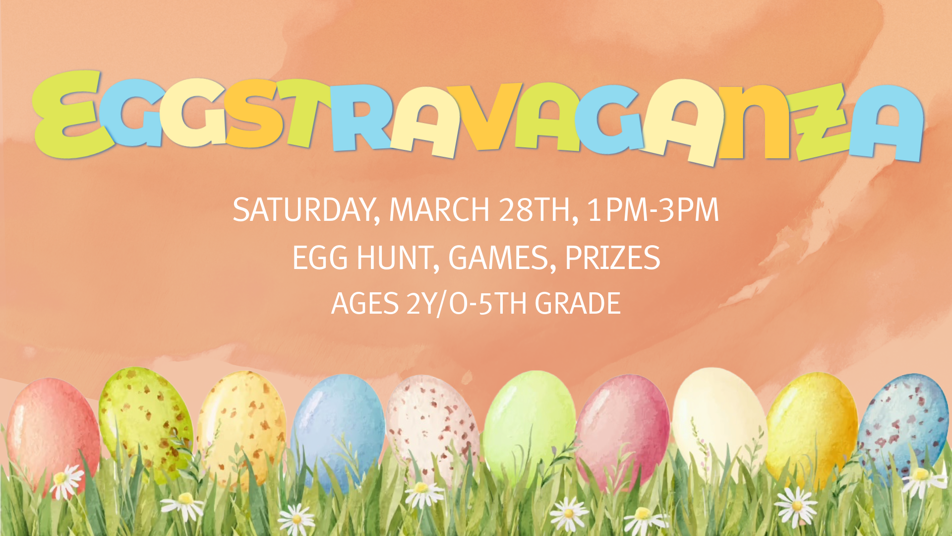 It’s time for our Easter Eggstravaganza! This is a great time for kids and families to come together and celebrate Jesus’ Resurrection. There will be crafts, games, prizes, and of course, an egg hunt. We encourage you to bring a friend or family member!